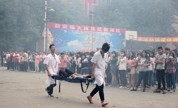 5月14日下午14点28分,我校全体师生进行了一场防震、防火应急疏散演练,3000多名学生、200多名教师参加。